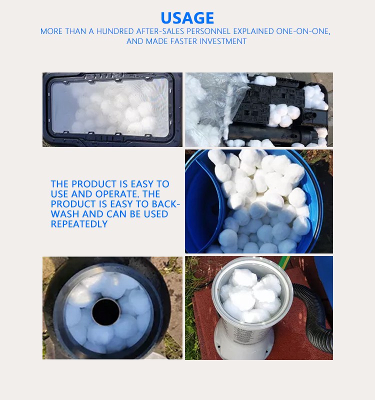 فلٹر گیند پالئیےسٹر فائبر سے بنی ہے، جو ریت کا بہترین متبادل ہے۔ ریت کے مقابلے میں، فلٹر گیند میں فلٹریشن کی اعلی درستگی، اچھی لچک، کوئی جمع نہیں، وغیرہ ہے۔